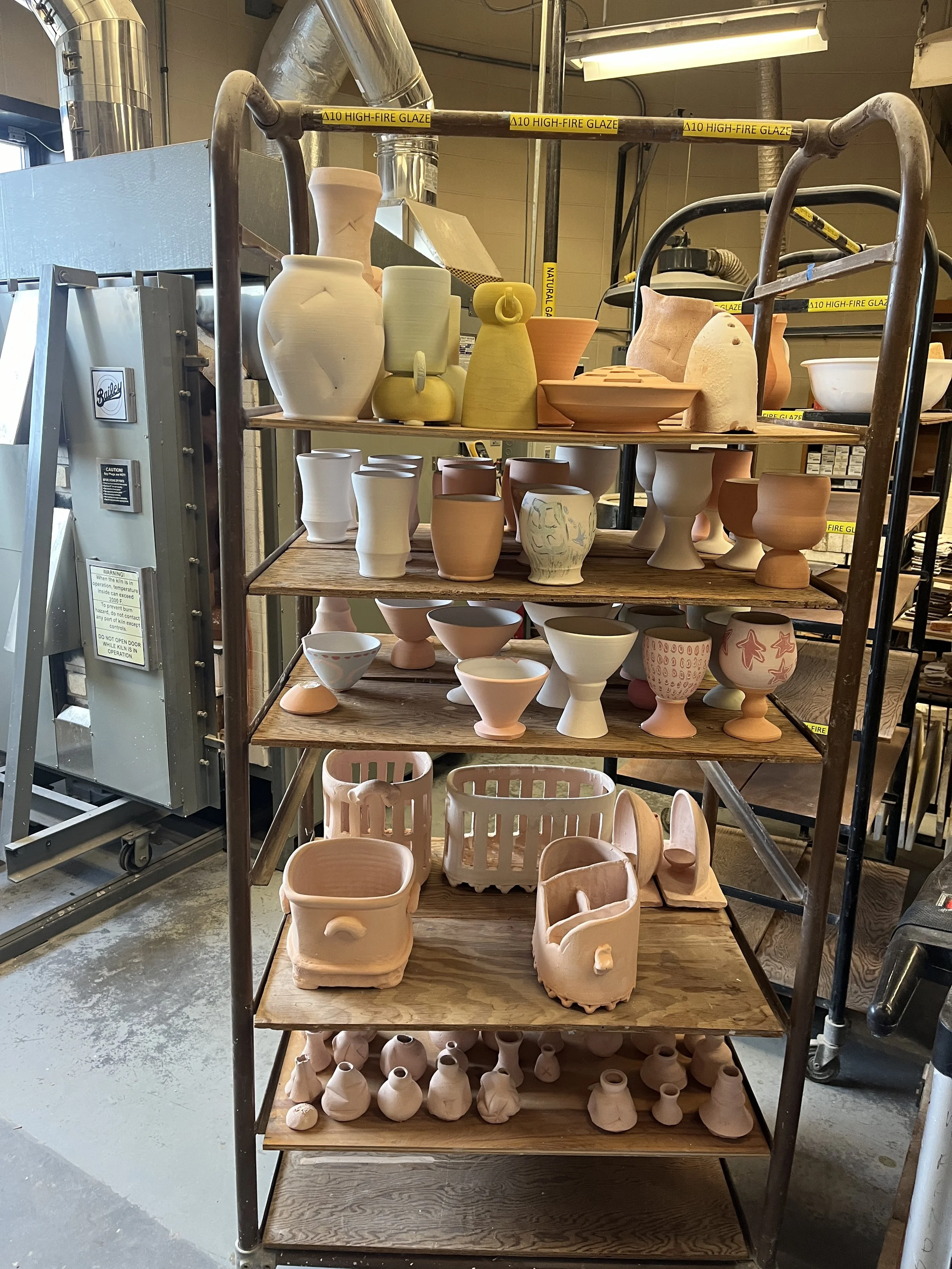 To give myself a break from all this computer work, I threw myself it preparing for the Dirtbags Valentine’s Day Sale. Kate and I worked together to throw, trim, and join over 40 cups. Afterwards, I dived into making vases, caddies, and pitchers.