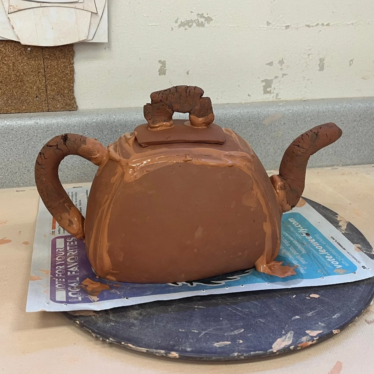 I’m going to start the week with playing around with Joe Pintz’s Endicott clay body recipe. I’m excited to play around with a terracotta clay. Hilariously enough, my clay is ripe enough that the color shifted to a deep brown color that I like more than the brighter red dried color. So lets see if I can actually get a clay body that is naturally that beautiful brown.