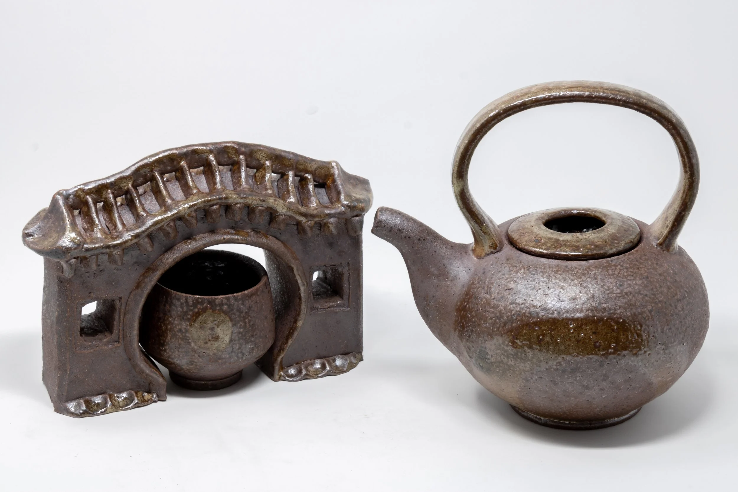 The public schools are on fall break, giving me a whole two weeks in the studio. I’m finally getting around to messing around with the flameware body that I found earlier in the semester. The two teapots to the left are made from a Robbie Lobell recipe.